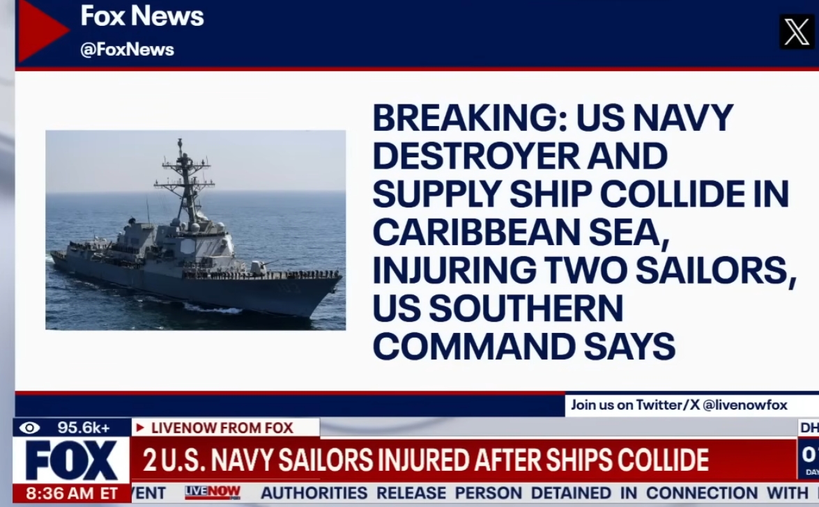 REPORT (FOX): According to the U.S. Southern Command a Navy Destroyer ship and supply ship collided in the…