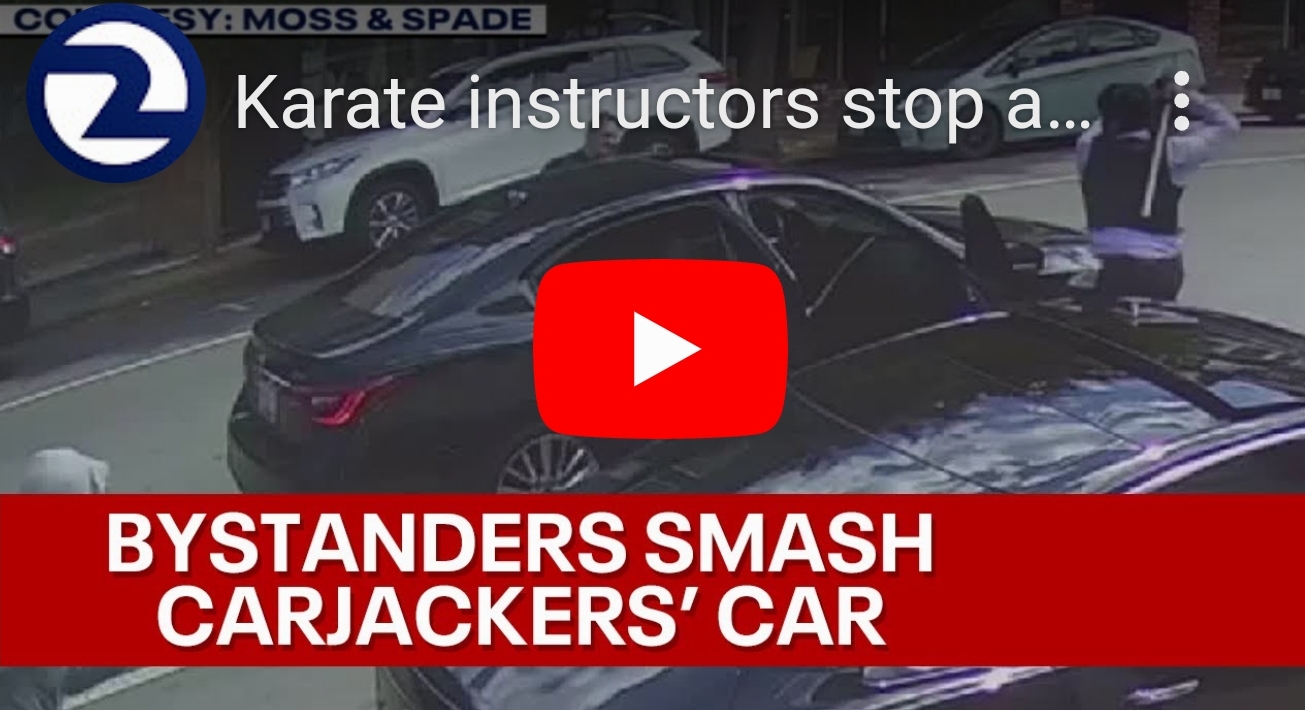 A shocking video shows how two masked carjackers were foiled by two karate instructors who sprinted across the…