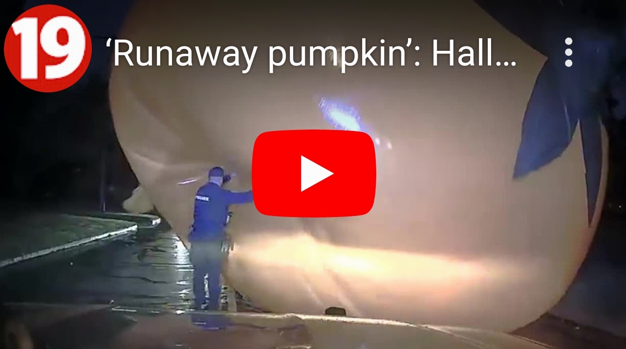 ‘Runaway pumpkin’: Halloween display swallows local police officer | Caught on Camera