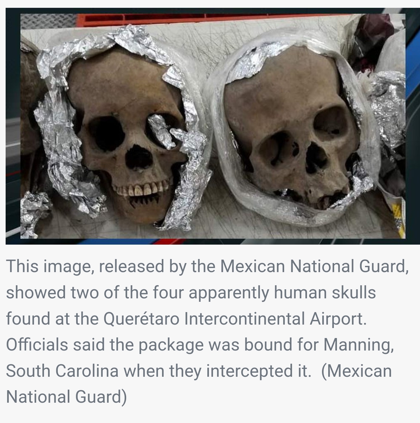 FOR MORE NEWS HEADLINES AND VIDEOS CLICK HERE The Mexican National Guard says it discovered four skulls, apparently…