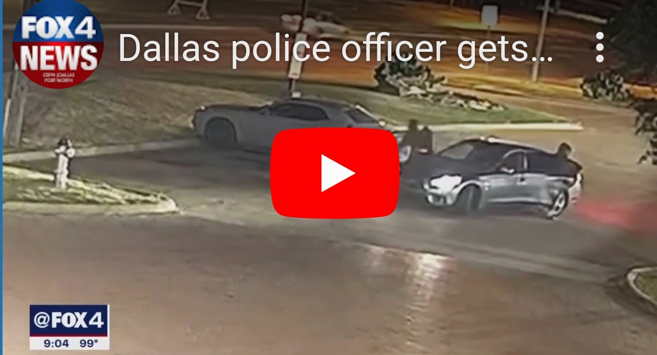 A surveillance video captures the moment when a Dallas police officer was carjacked and shot in the leg…