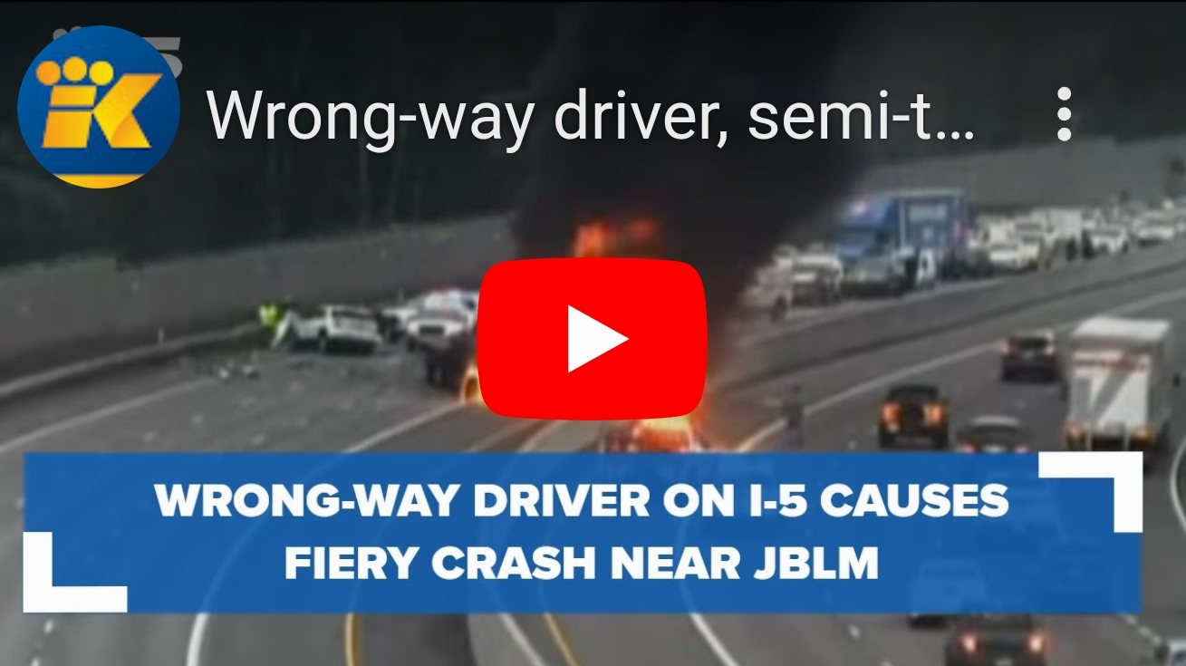 A wrong-way DUI driver crashed into a semi-truck on I-5 near Joint Base Lewis-McChord, WA. The car caught…
