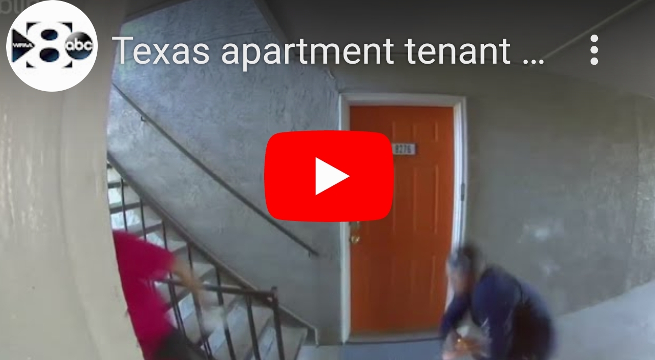 Watch the shocking footage of a Dallas apartment tenant who fired his gun through the door at two…